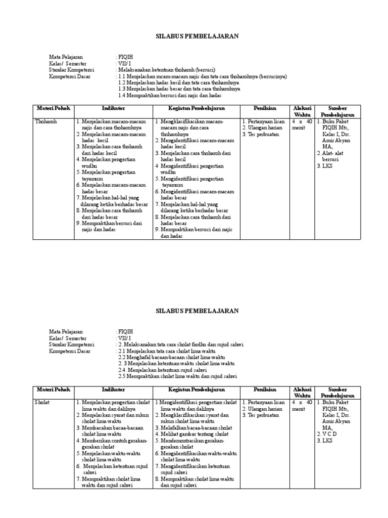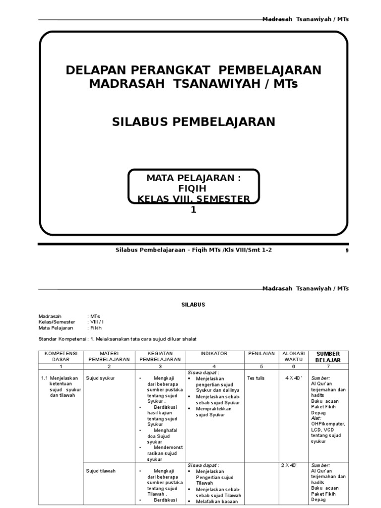 Silabus Fiqih Mts : Silabus Fiqih Kelas 8 Kurikulum 2013 Revisi Semester 1 Dan 2 Lengkap Docx Beranda Pendidik - Silabus mencakup standar kompetensi kompetensi dasar materi pokokpembelajaran kegiatan pembelajaran indikator penilaian alokasi waktu dan sumberbahanalat belajar.