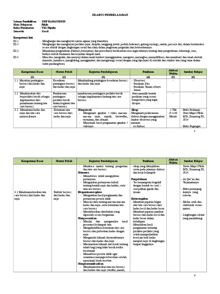 Salah satunya adalah silabus fikih kelas 9 mts kurikulum 2013 revisi terbaru. 6 46 1 pemetaan kd fiqih mts kelas 7 semester 1 & 2.doc. Tapi diusahakan untuk melengkapi koleksi rpp dan silabus. Negeri 3 cibatu kecamatan kersamanah tahun pelajaran 2015/2016 mata pelajaran : Silabus fiqih mts kurikulum 2013 revisi 2017 kelas 7, 8, 9 ini merupakan perangkat terbaru yang akan saya bagikan pada kesempatan kali ini untuk para guru mapel fiqih untuk jenjang madrasah tsanawiyah sebagai persiapan menghadapi pembelajaran tahun ajaran 2018/2019 baik semester 1/ganjil maupun semester 2/genap.